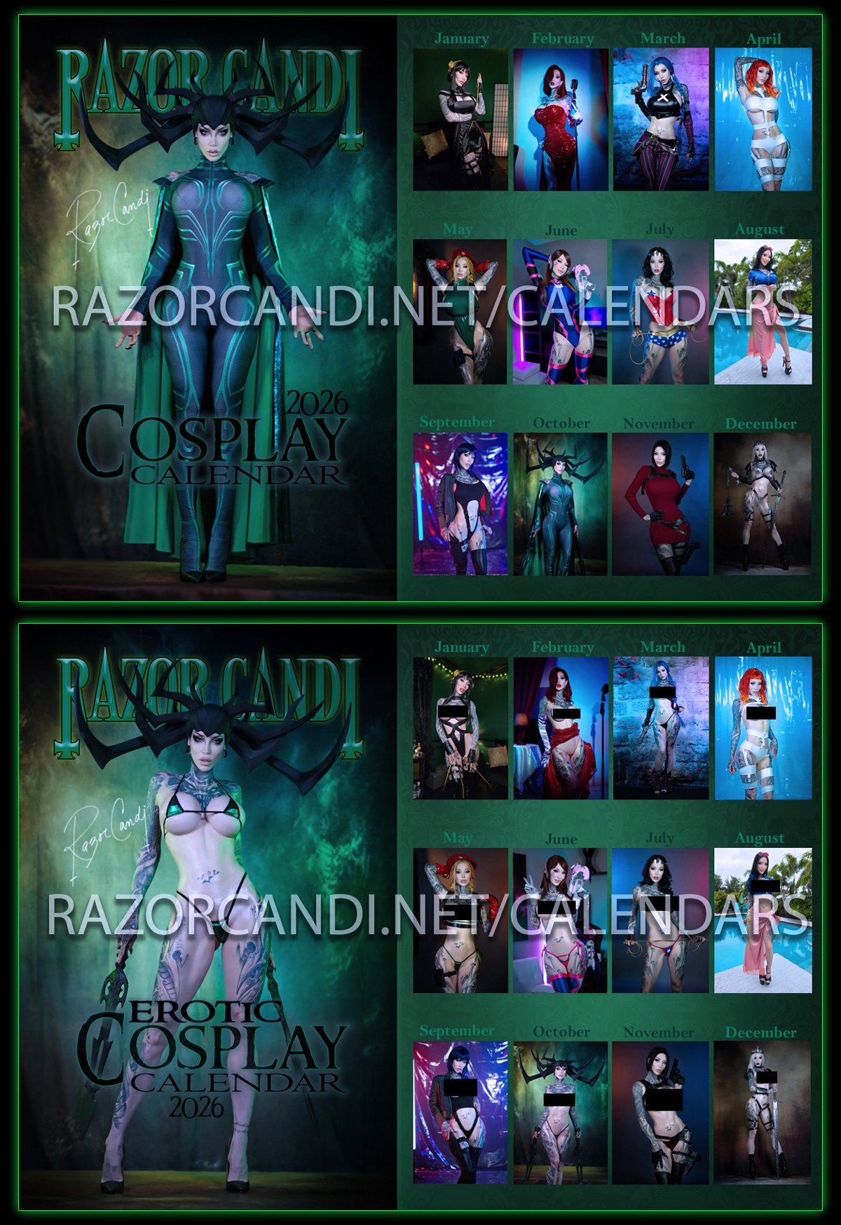 1pc - Limited edition 2026 NSFW RazorCandi signed calendar containing 12 NSFW images+the cover with some of my best recent cosplay works and even two unreleased works! All images are tasteful artistic NSFW photos.